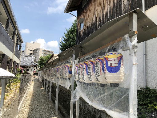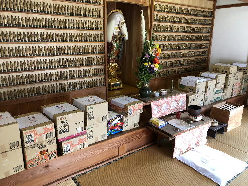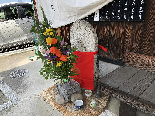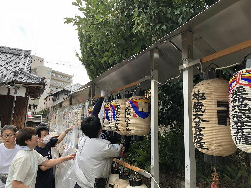 地蔵盆当日 朝から来客受け入れ準備を行う