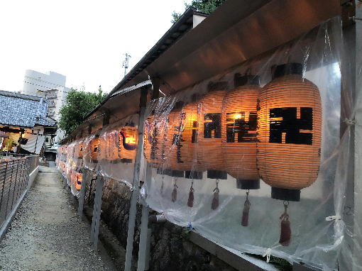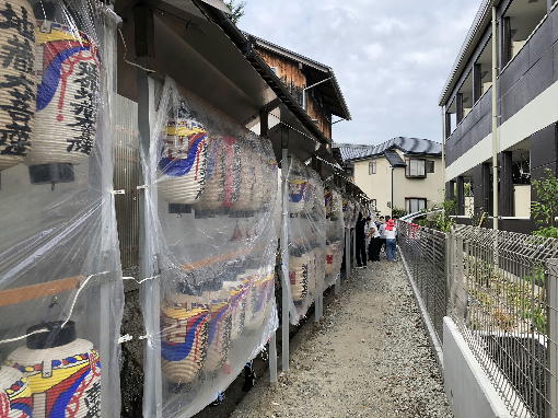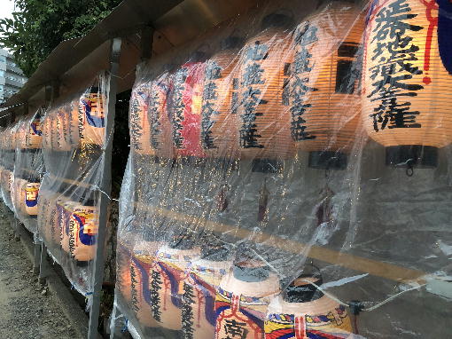 午後7時半には夜のことも考え突然の雨にも対応できるよう提灯を片付けました。 |