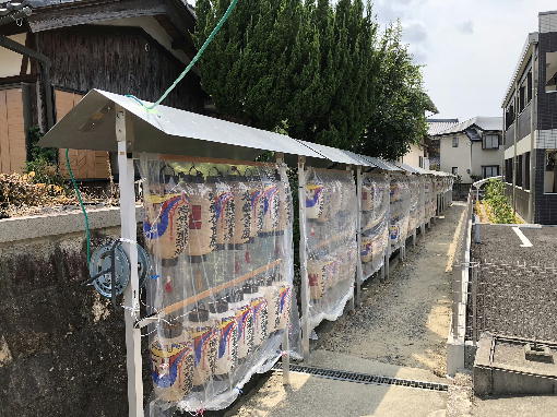 8月18日当日朝から 提灯を出したり幕を張ったりして迎えの準備を朝7時から行いました。