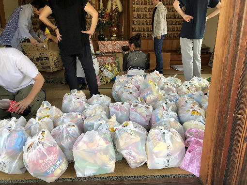 19日朝から撤収とおさがりの袋詰めを行い、お返しにまわりました。 |